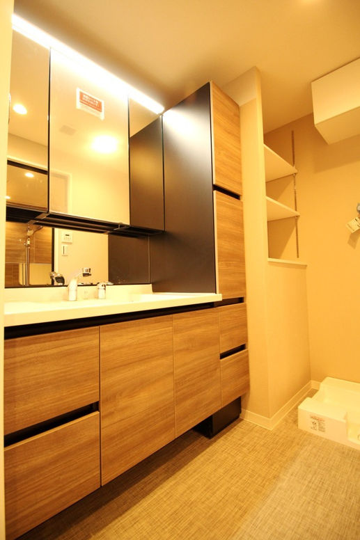システムキッチン新規交換(食洗機、浄水器、3口ガラストップコンロ)、浴室新規交換(浴室乾燥機、追い焚き機能)、トイレ新規交換(ウォシュレット)、洗面新規交換、建具、下足入れ、フリーリング、エアコン2基設置)、クロス、給水管等